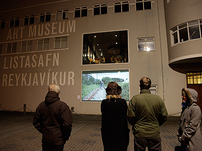 Nordic Outbreak visited Reykjavik Art Museum between October 25-27, 2013, exploring the theme animated bodies and modified realities. The exhibition program included a screening in the RAM Multispace and a window installation on the facade of RAM to be seen by audience and passersby from the street.